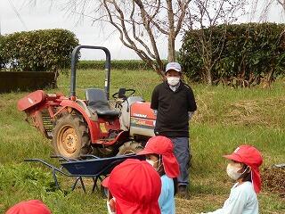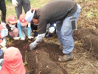 お芋の収穫の仕方を沖田さんから教えていただきます。