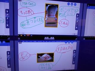 それを大型テレビに配信して、全員のを比べたり、発表に活用したりしながらみんなでパワーアップする方法を考えていきました。