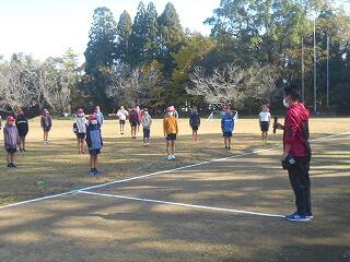 今日は、絶好の持久走日和です。待ちに待った持久走大会の開催です。子ども達は、すでに軽いランイングで調整していました。さすがですね!