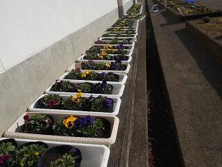 卒業式用のプランターの花々もきれいな花を咲かせています。