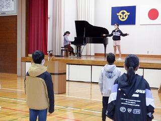 最後に、5年生児童の指揮とピアノ伴奏で校歌を歌いました。