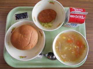 今日から学校が始まると同時に、給食も始まりました。令和4年、最初の給食は、子ども達に人気のコロッケです。