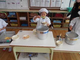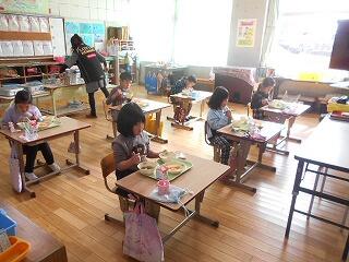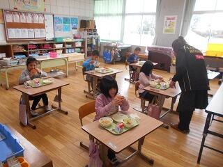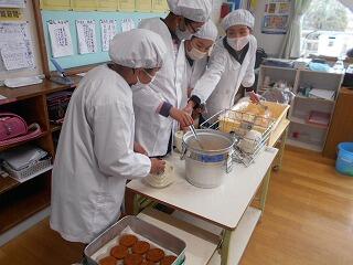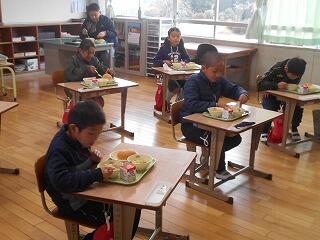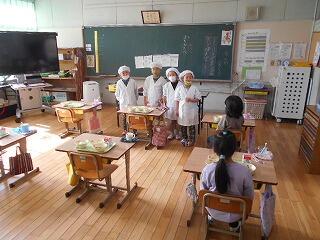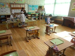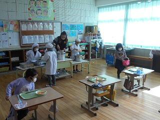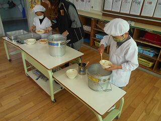 一生懸命、ご飯をよそったり、お汁を注いだりして配膳準備を頑張りました。3学期は、全て自分たちで給食の準備をすることになります。