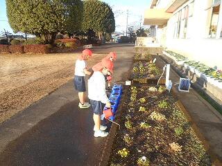 そんな中、1年生はチューリップへの水やりを頑張っていました。