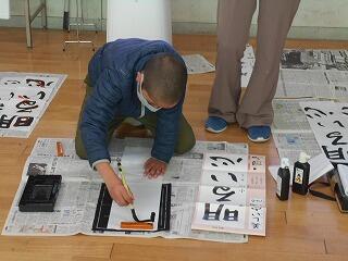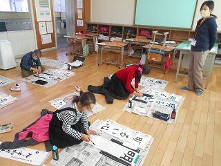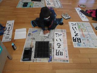 4年生は、書写の授業で「書き初め」をしました。普通は半紙に書くのですが、今日は条幅紙にチャレンジです。