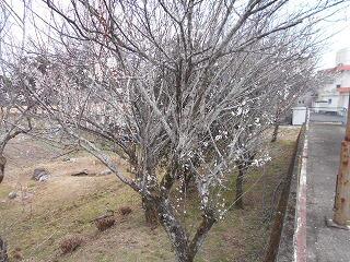 さて、本校のプール脇には、梅の木があります。毎年、たくさんの実をつけてくれます。その梅に花が咲きました。まだ3分咲きほどですが、きれいな花をつけてくれました。