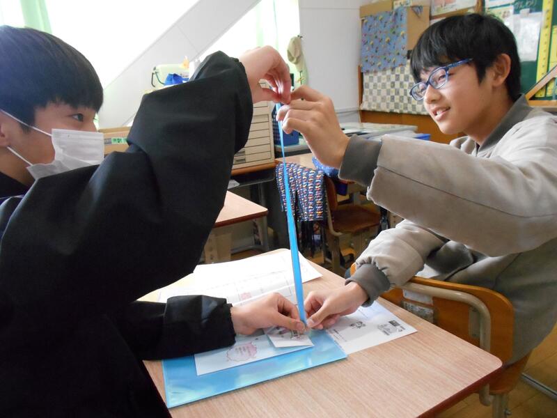 カードに結ばれたリボンは、1年生から6年生までの間に伸びた身長と同じ長さでした。