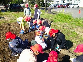 2年生が生活科で育てていたサツマイモを2・3年生で収穫しました。