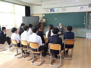 木城絵本の郷の読み聞かせの方によるお話し会が行われました。小学1年生~中学2年生までを対象に、絵本の読み聞かせや暗記をされているお話しの語りなどを子どもたちにあたたかく、しっとりとお話ししてくださいました。低学年からは笑い声も聞こえてきました。写真を見ると、どの子も読み聞かせの方の方を見ていますね。