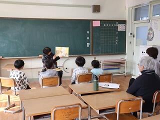読書の秋 人の声のやわらかさ 読み聞かせにより、心落ち着く時間でした。読んでくださった絵本の題名をおぼえたり、興味をしめす小学生もいました。