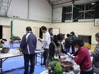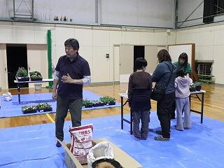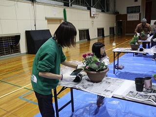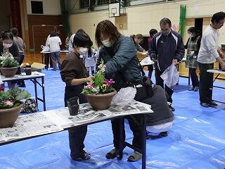福岡生花店様を講師にお招きし、「花の寄せ植え」教室が行われました。シクラメンや葉ボタン等、様々なお花から選択し、植え方を教わりながらそれぞれの寄せ植え鉢ができました。