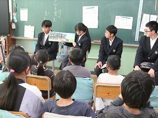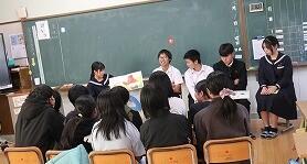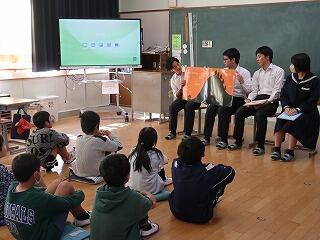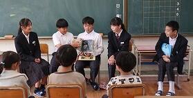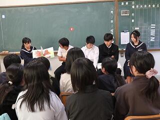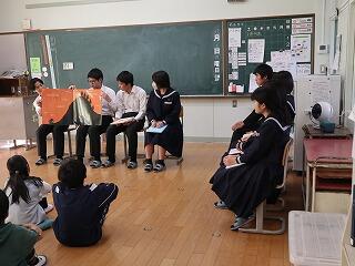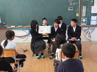 中学生による小学生への読み聞かせが行われました。この日のために、中学生は選書し、読む練習をしてくれたそうです。仲の良い中学生からの読み聞かせに、笑顔あふれる場面もありました。