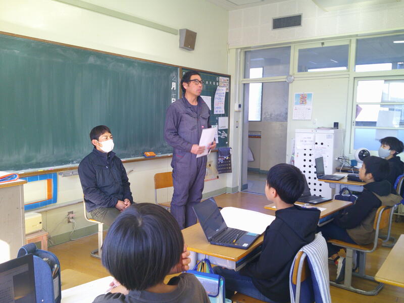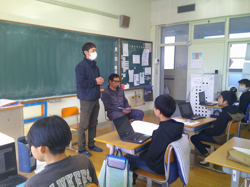 そのためには、自分たちがより詳しく三納のお米について知る必要があるとなりました。そこで、三納の農家さんを招いて、より詳しくお米について教えていただきました。社会で学習した米作りのこと以上の詳しい様子を学ぶことができました。