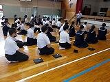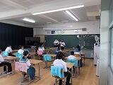 また、5校時に避難訓練(地震)が行われました。児童生徒全員、すみやかに落ち着いて行動できました。避難指示から3分46秒で、運動場整列、人員点呼までを終えました。