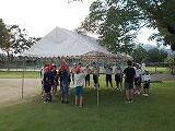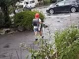 朝食と退館式の様子です。天気は曇りですが。皆元気です。予定より5分早く出発できました。