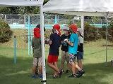 親子団技も久しぶりの開催。小6対中3で競い合いました。