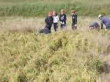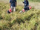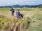 JA西都の青年部の皆さまのご協力をいただき、小学部5年生の稲刈りが行われました。児童の皆さんは、朝から、ワクワクしている様子でした。青年部の代表の方から、稲刈りの方法や注意点を学び、その後、田んぼに入り稲刈りを行いました。みんな楽しく取り組みました。