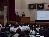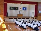 地区中学校秋季体育大会が9月24日から実施されます。本校から、バレー部、野球部、女子テニス部が参加します。その地区大会の激励会が9月22日に行われました。各部の抱負、生徒会代表あいさつ、選手宣誓などがありました。校長先生からは「一度あきらめると癖になる。だから絶対にあきらめない。(If you quit once it becomes a habit. never quit.:Michael Jeffrey Jordan)」「努力すれば報われるわけではない。報われるまで努力する。(Will you be rewarded if you make an effort? No. Make an effort until you are rewarded.:Lionel Messi)」等の言葉が送られました。