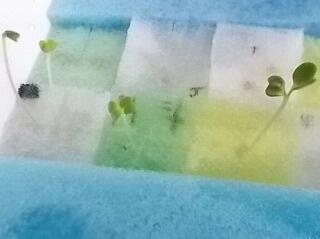 中学部の2年生で、水耕栽培の実習を行っています。先週、水を含ませたスポンジに水菜、ほうれん草、小松菜の種を植えました。芽が出てきたので、近々ペットボトル容器にセットします。約2ヶ月で収穫できる予定です。