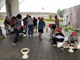 西都市や高鍋町に店舗を構えていらっしゃる福岡生花店様のご協力により、花の寄せ植えの研修会が行われました。保護者、職員合わせて20名の参加がありました。福岡生花店様には、きれいなお花をたくさん準備していただくだけでなく、寄せ植えのテクニック、花の育て方等分かりやすく丁寧に教えていただき、参加者全員とても素敵な寄せ植えを完成させることができました。福岡生花店の福岡様、誠にありがとうございました。心より感謝申し上げます。また、参加してくださったみなさまには、準備、片付け等ご協力をいただきました。ありがとうございました。