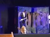 演劇には、小学部と中学部の代表の児童生徒も参加しました。「風の歌」や「どんぐりの歌」を歌ったり、裁判のシーンを演じたりしました。児童生徒のみなさん、全員が上手に表現できており、とても感心しました。