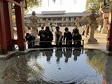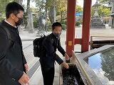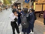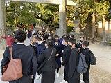 修学旅行2日目は、午前中が長崎市内の班別研修でした。13時10分の集合時刻までに、全グループとも、トラブルなく戻ってきました。午後は、福岡県に移動し、九州国立博物館の見学と太宰府天満宮での参拝、参道散策等をしました。ホテルに向かうバスに乗る前に、梅ヶ枝餅をおいしくいただきました。