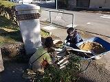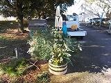 シルバー人材センターの方々による木の剪定が行われています。校舎内の木々がとても美しく刈り込まれています。