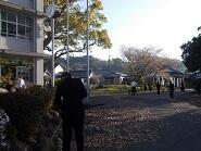 その、旧中学校校舎の校門周辺の風通しを良くし、樹木の病気や害虫を予防する共に、美観性を損ねないように、本校の校長と専門主事が樹木の剪定を行いました。校長自前の家庭用チェーンソーとのこぎりを用いて、1日がかりの大仕事でした。