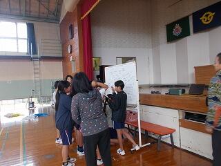5・6年生の児童たちが、「んまツーポス」の皆さんと2回目の授業でした。今日も子どもたちは笑顔で動いていました。今日は、ソラシドエアになって、羽田・名古屋・那覇・宮崎空港を駆け回り、それぞれのグループでそれぞれの空港のことを調べ、みんなで考え行動していました。