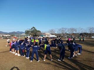 大会前に全校生徒で円陣を組んで気合を入れました。