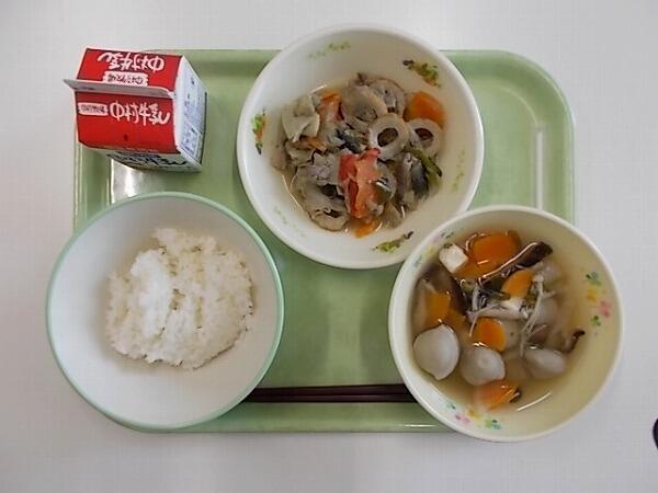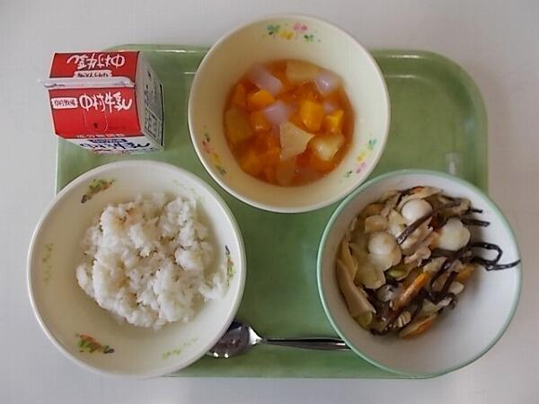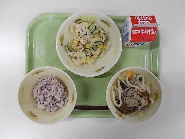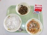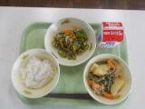 小学部、中学部ともに、「減量いりこめし、鶏ごぼううどん、大根のマヨネーズ和え」でした。