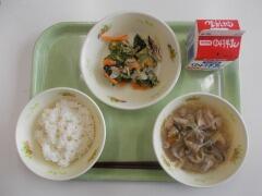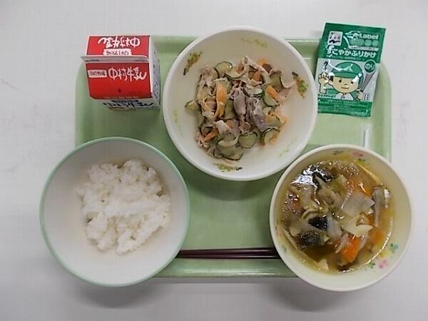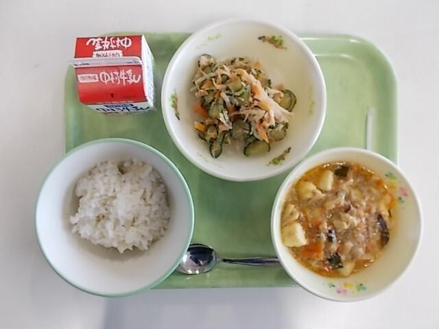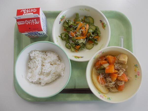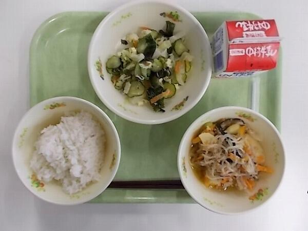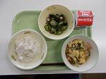 小学部、中学部ともに、「むぎごはん、あつあげのそぼろに、きゅうりのすのもの」でした。