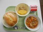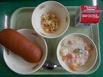 小中学部同じ献立で「ドッグパン、グリーンポタージュ、ウインナー、ゆでキャベツ(一食ケチャップ)」でした。