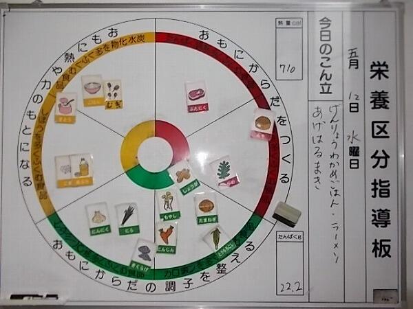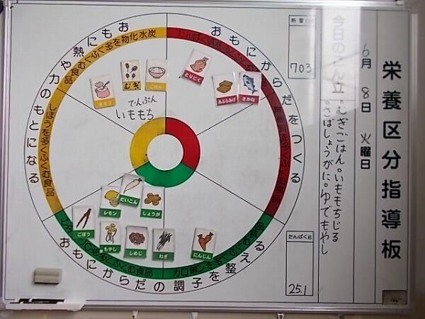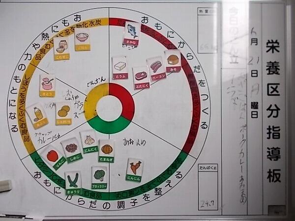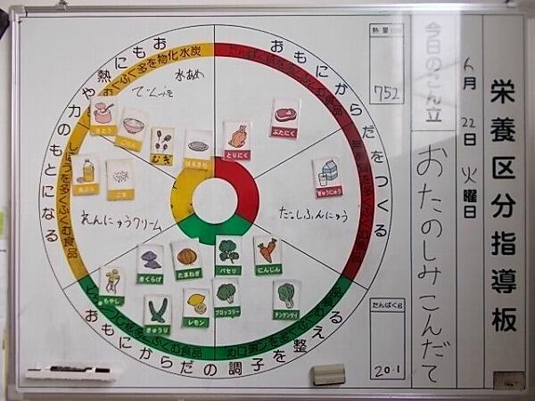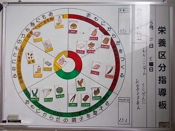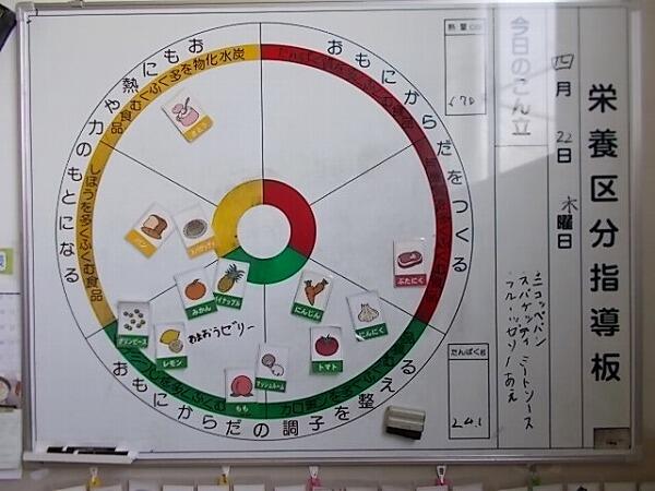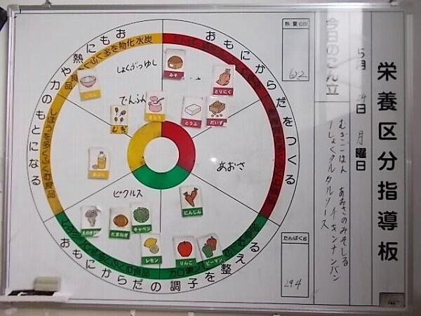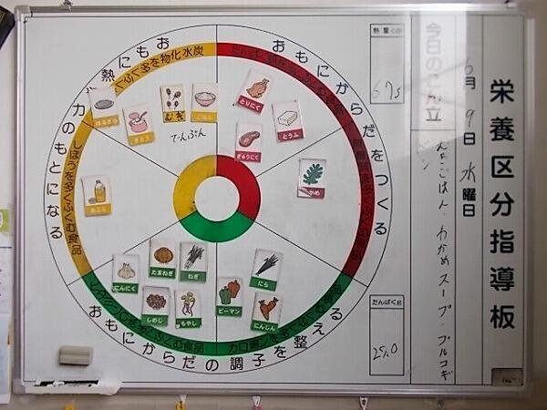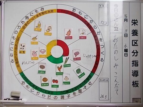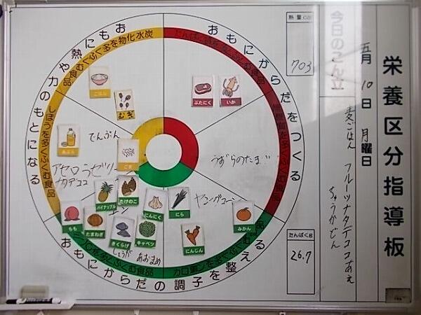 左上が小学部(むぎごはん、キムチトックスープ、ビビンバ)の献立です。右上が中学部の本日は「お楽しみ献立」で、減量麦ごはん、オニオンスープ、照焼チキン、いちごタルトでした。