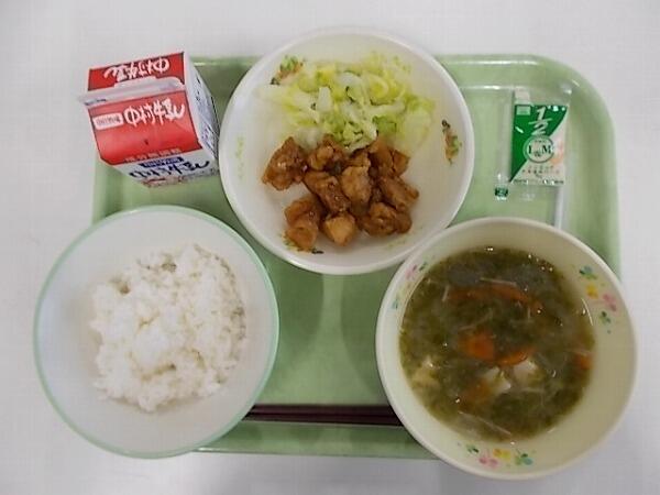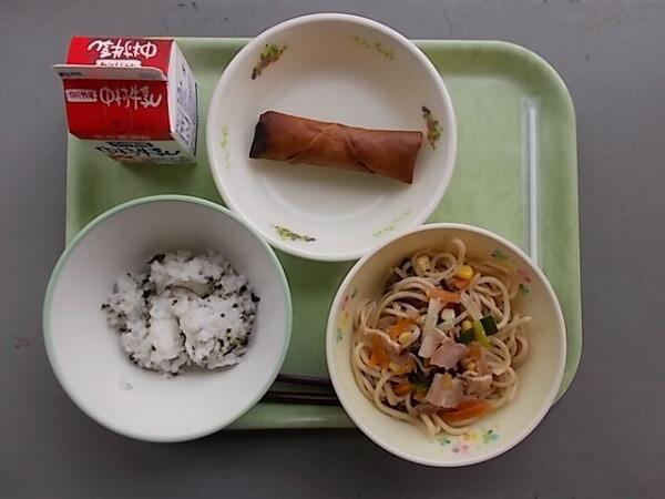 小中学部同じ献立で「減量わかめご飯、ラーメン、揚げ春巻き」でした。
