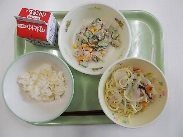 小中学部同じ献立で「減量あわご飯、ちゃんぽん、カミカミごぼうサラダ」でした。