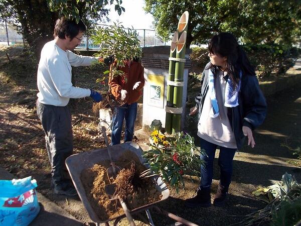 卒業式終了後は、保護者と児童でタイムカプセルを埋めました。
