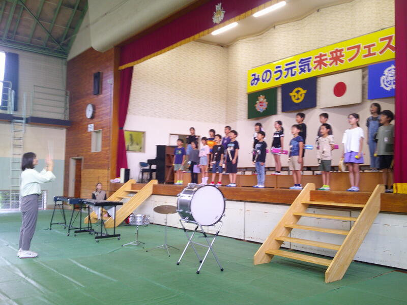 11月2日(土)に第8回みのう元気未来フェスタが行われました。午前中は小学生の劇や合奏、中学生の英語弁論や総合的な学習の時間で学んだことの発表、合唱などのステージ発表が行われました。お昼には、地域の方々や保護者の皆さまの協力で、炊き込みご飯やポップコーン、綿菓子や豆腐団子、焼きそばさんどのふるまいがありました。また、多目的室では、児童生徒や地域の方々の美術作品の展示も行われました。午後のステージ発表では、地域の方々のギター演奏やマジックショーなどもあり、児童生徒や来場者の方々が大いに盛り上がっていました。