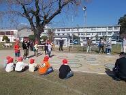 いざというときのために日頃から訓練を積んでおくことはとても大切です。生徒は緊張した様子で訓練に参加していました。いい経験になりました。(写真は中学部のみです)