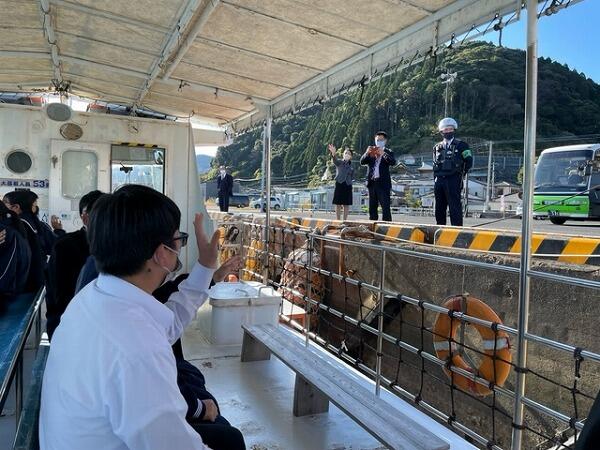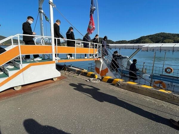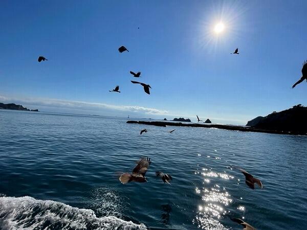水中観光と、とんびの餌付けを見終え、港に戻りました。