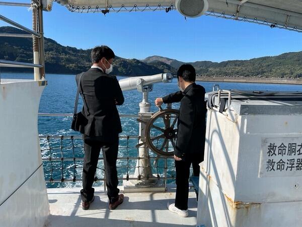 駐車場側にある津波・水害対応型救命艇に特別に乗せてもらいました。