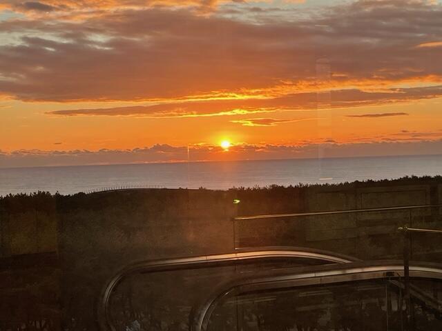 朝食を一時中断して、皆で朝日を見ました。