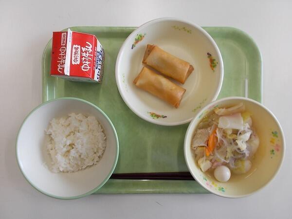 小学部の献立は「減量麦ご飯、タイピーエン、揚げ春巻き」でした。