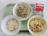 中学部の献立は「減量あわごはん、ちゃんぽん、かみかみゴボウサラダ」でした。