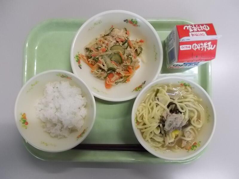 小学部の献立は「減量麦ごはん、ちゃんぽん、バンバンジー」でした。