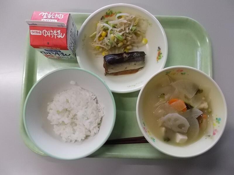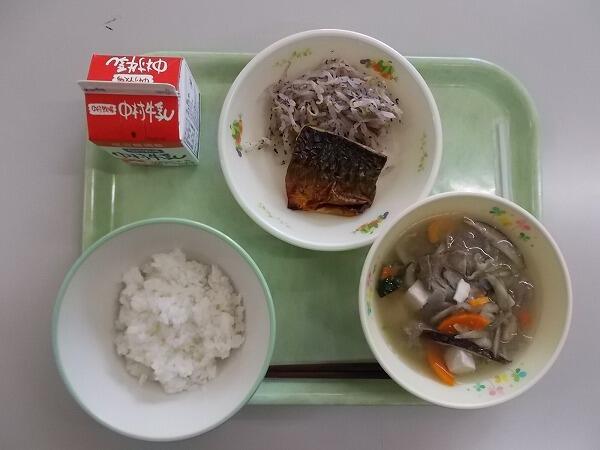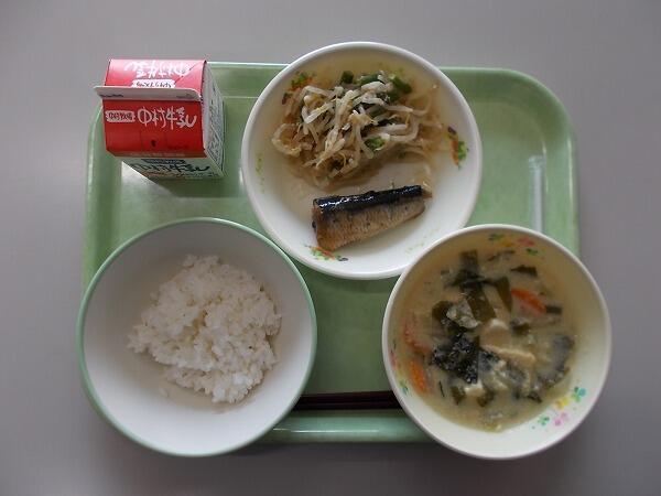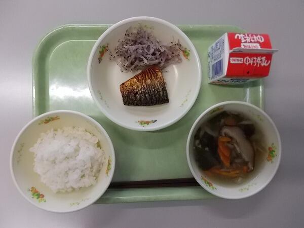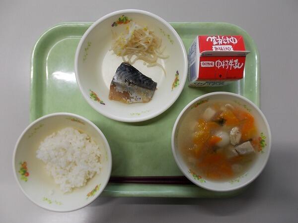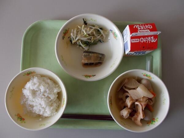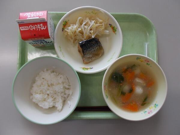 小学部の献立は「麦ご飯、みぞれ汁、さばゆず味噌煮、ゆでもやし」でした。