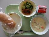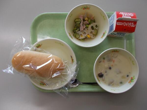 中学部の献立は「減量黒糖パン・クラムチャウダー・