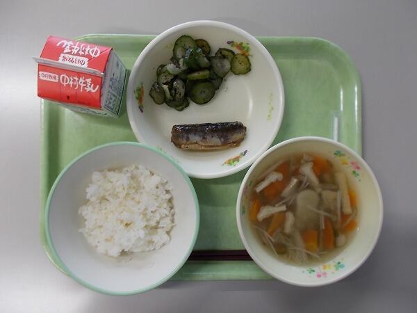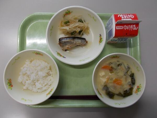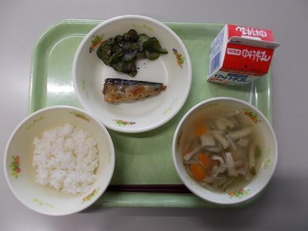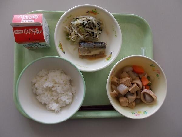 小学部の献立は「麦ご飯、いかと大根の煮物、サンマゆず味噌煮、ごま和え」でした。