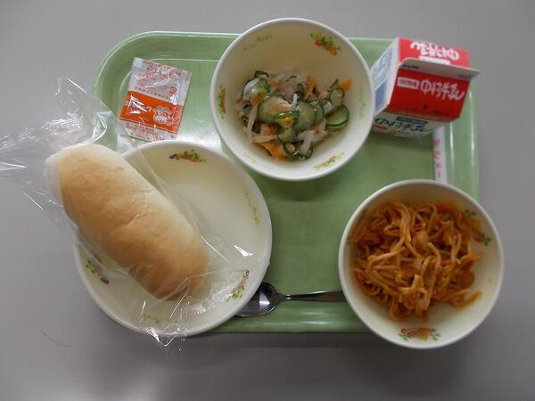 小学部の献立は「減量コッペパン、スパゲティナポリタン、大根サラダ、ミルメイク」でした。