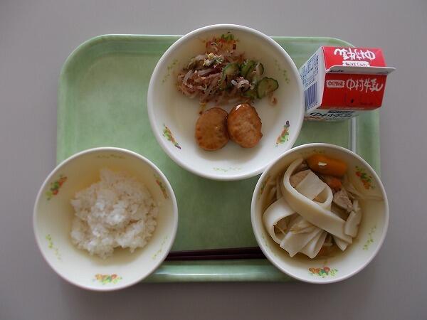小学部の献立は「麦ご飯、おでん、ごま和え」でした。